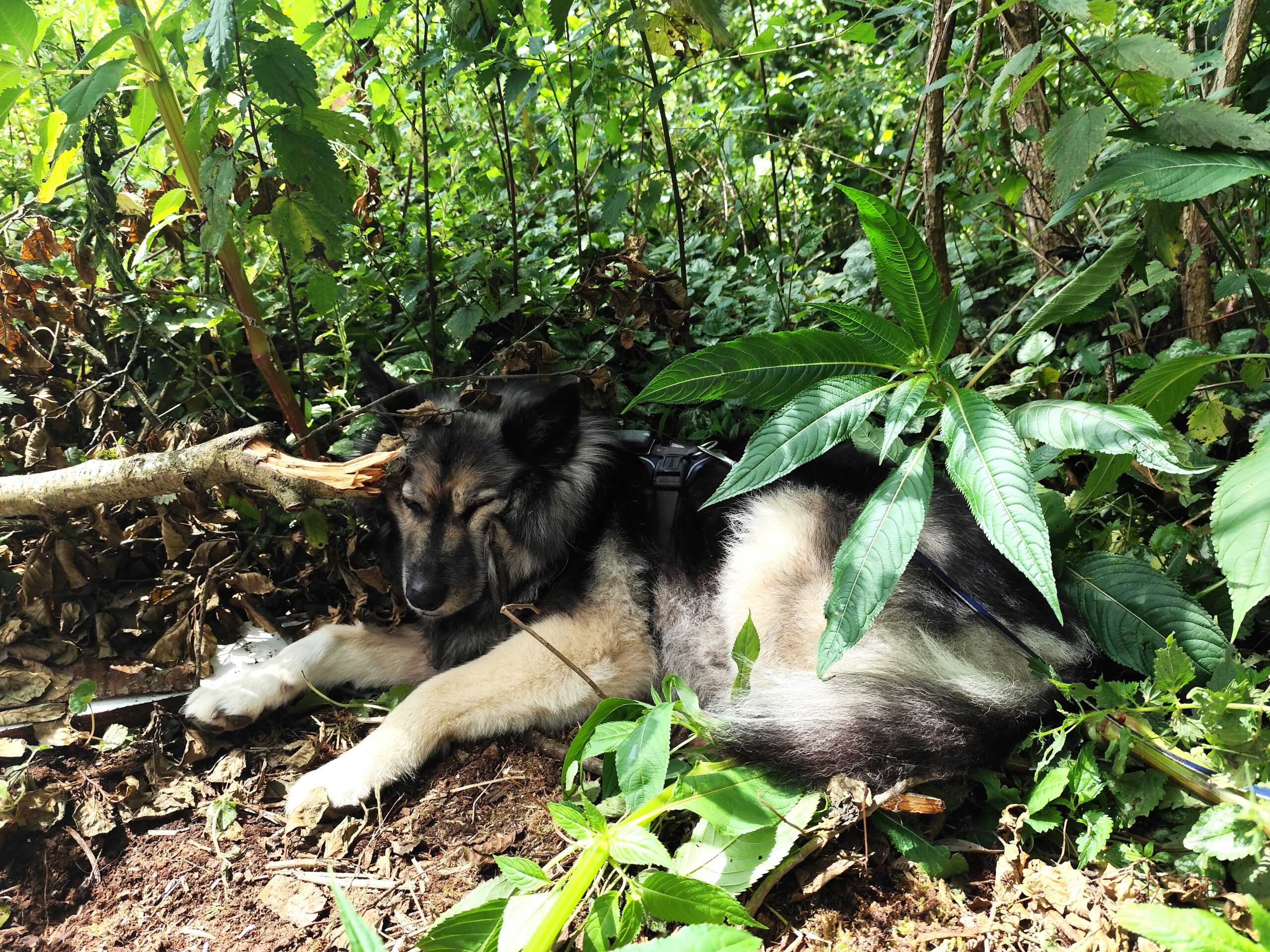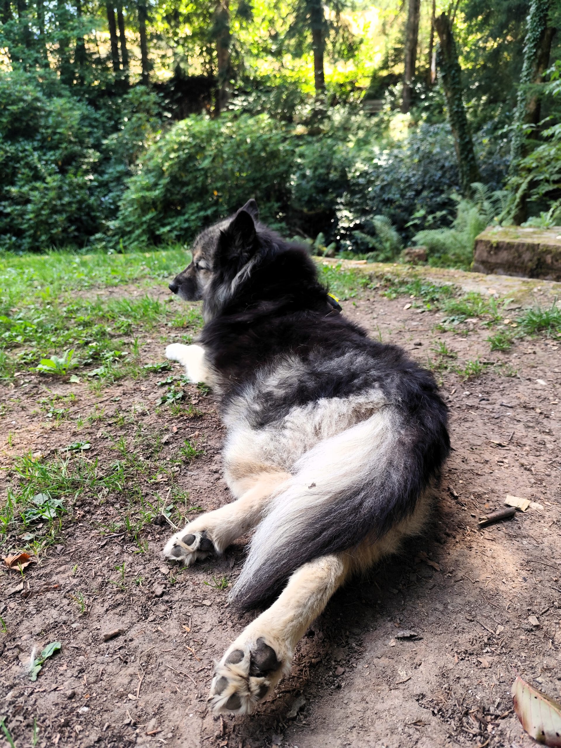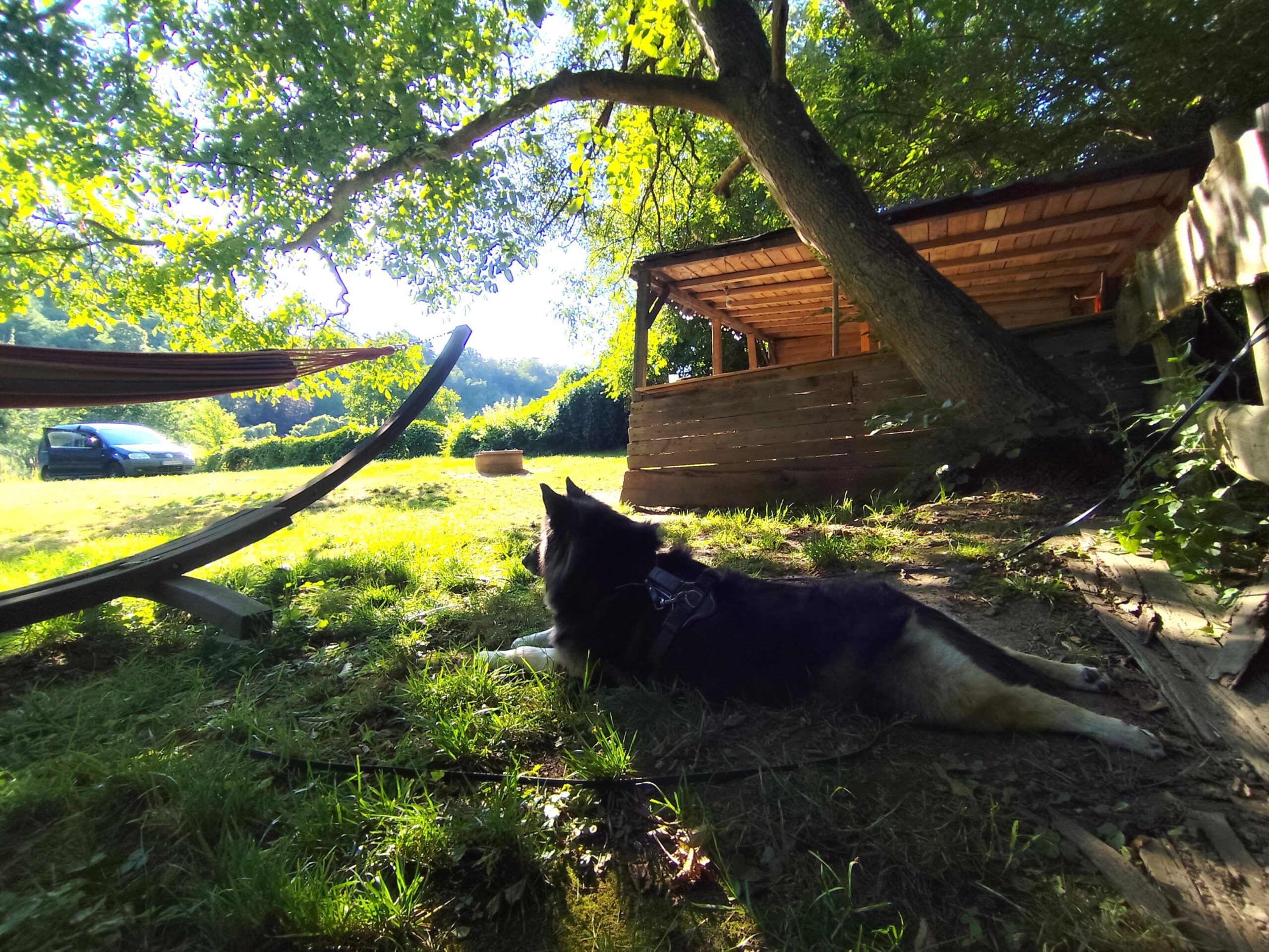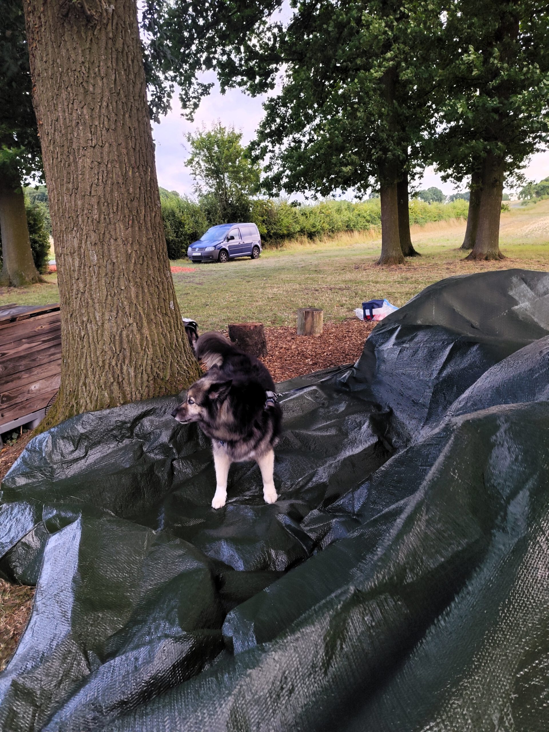 In aller Frühe beobachte ich im Garten die Aktivitäten. Das Gepäck im Caddy wird umgeräumt, Herrchen arbeitet und redet von Arbeit im Wald. Ich bin dabei, der Plan vom Forest Office klingt genial, los geht’s! Das Camp in Bad Herrenalb begeistert uns alle – eine Hütte mitten im Wald, Stein-Stufen führen hinab zum Gaisbach, der sich durch das Gelände schlängelt, ein Lagerfeuerplatz mit Holz-Bänken, dazu ein Sandkasten. Das ist mein Platz! Da wir ohne Nutzung der Hütte gebucht haben, ist kurzerhand das Tipi aufgebaut. Beim Erkunden des Geländes entdecken wir einen Ameisenhaufen und ein Fuchs kreuzt unseren Weg. In der Ferne hören wir die Huskys heulen, die hier öfters Touren machen. Nach einem sehr ausgiebigen Mahl, heute scheint mein Fresstag zu sein, verbringen wir den Abend am Lagerfeuer. Die Fledermäuse tanzen im Sternenlicht, der Himmel funkelt magisch.