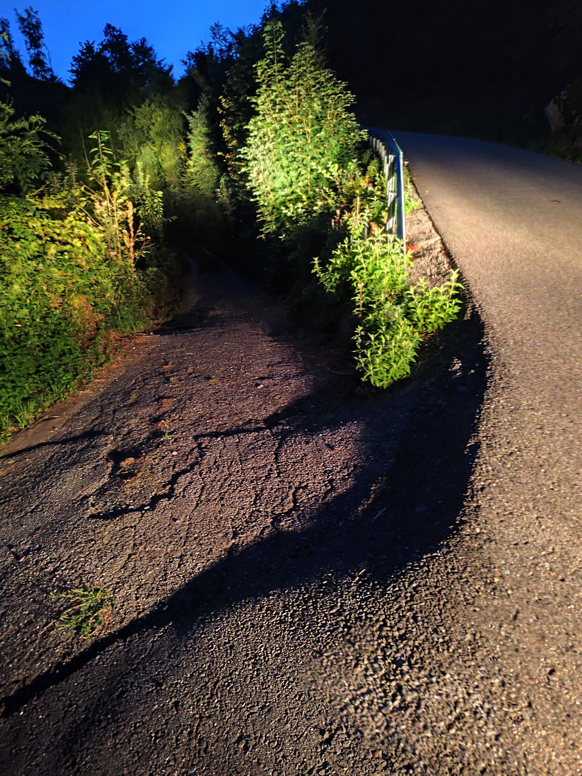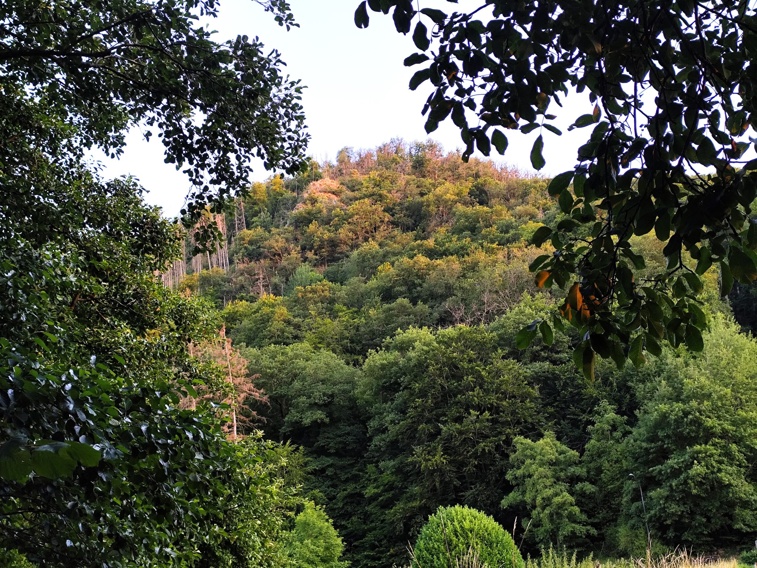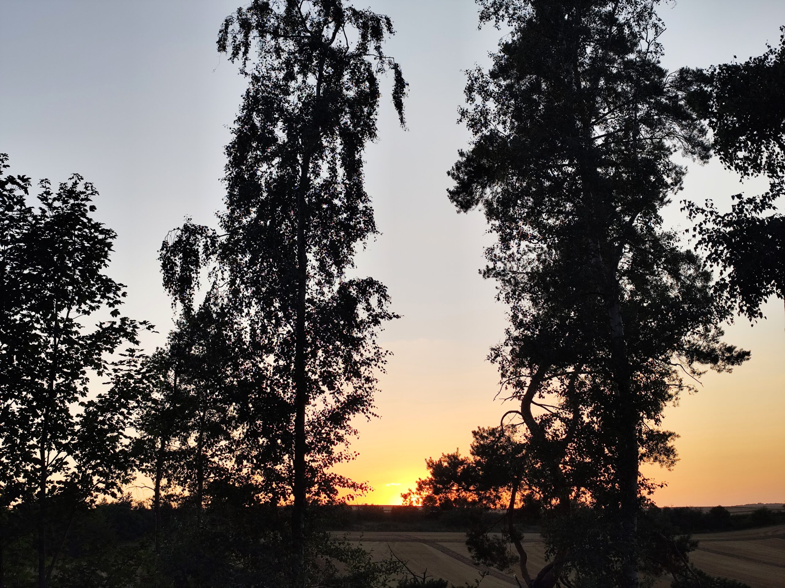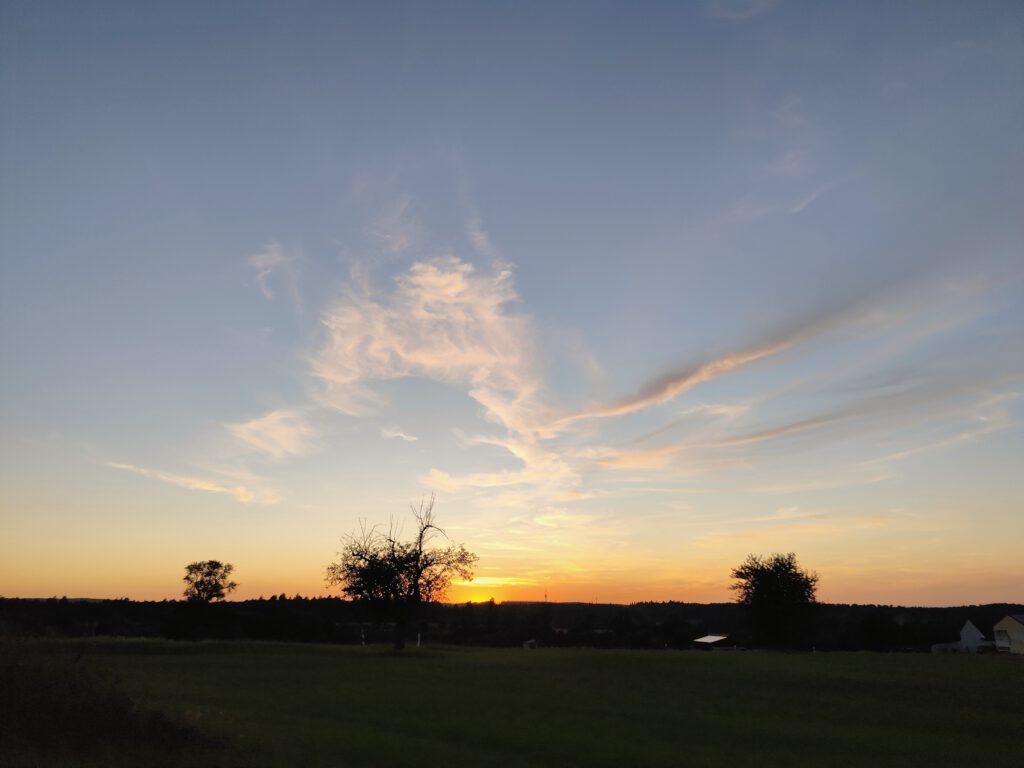 Die 18 Grad fühlen sich nach den Hitzetagen fast kühl an. Kaum bin ich mir dessen bewusst, heißt es: on the road again! Über die Werra in Thüringen schwenken wir nach Bayern ein. Ottelmannshausen hört sich lustig an, auf einer Weide grasen Schafe, Ziegen und Esel, nur Hasen und Rehe fehlen zum perfekten XXL Kino. Die Bäckerei in Königshofen im Grabfeld hat auch sonntags frische Backwaren parat – was will man mehr? Wir durchqueren das Fränkische Weinland mit den tierisch klingenden Orten Schweinfurt, Kitzingen und Ochsenfurt, bis zur Pause bei Giebelstadt. Die Gassi Runde ist wohltuend nach der langen Zeit, die Frage nach dem Ziel bleibt für mich jedoch offen. Weiter geht es durch das Heilbronner Land in Baden-Württemberg, vorbei an Neuenstadt und Neckarsulm. Zwischen Auerbach und Karlsbad sinkt die Sonne langsam ins Tal, ein beeindruckender Sonnenuntergang begrüßt uns im Schwarzwald. In Bad Herrenalb gestaltet sich allerdings die Zufahrt zum Camp Gaisbachtal als Herausforderung, meine Leute ganz aufgeregt, ändern ihre Pläne. Zu später Stunde kehren wir heim nach Förch . Ist das Ende unserer langen Reise wirklich gekommen und neigt sich der Urlaub dem Ende zu? Die Abenteuerlust bleibt ungebrochen.