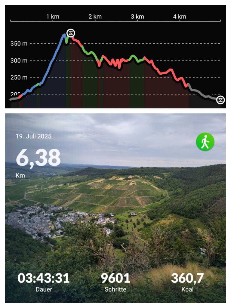 Leicht bewölkt und trotzdem warm starten wir in den Tag. Heute ist Shopping angesagt und danach erkunden wir die Burgruine Steinebach aus dem Jahre 1237. Nach der entspannten Pause drängen meine Leute zum Aufbruch. Ich sehe die Gewitterfront naht, kaum am Camp zurück, erwischt uns das Unwetter. Während meine Leute das Shelter sichern, verweile ich im Zelt. Zum Glück lässt der Spuk wieder nach. Abends genieße ich lecker Bratwurst und hoffe, dass diese Wetterlage uns nicht die ganze Zeit im Urlaub verfolgen wird.