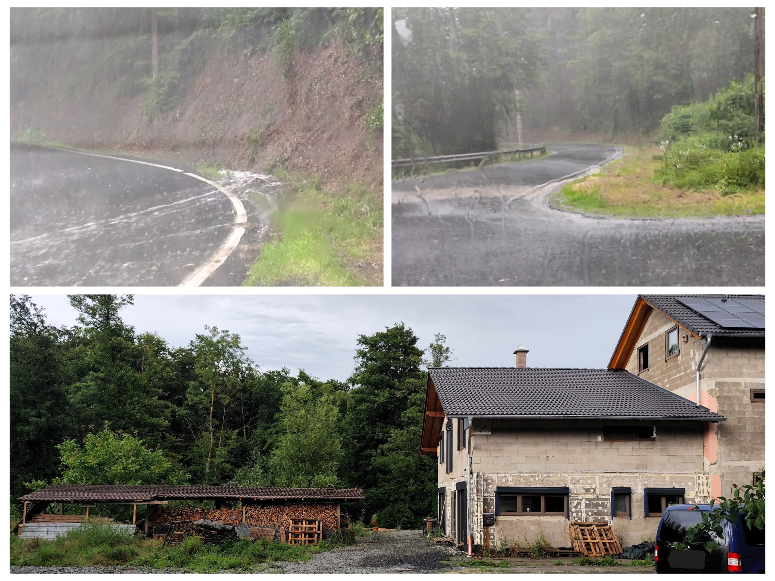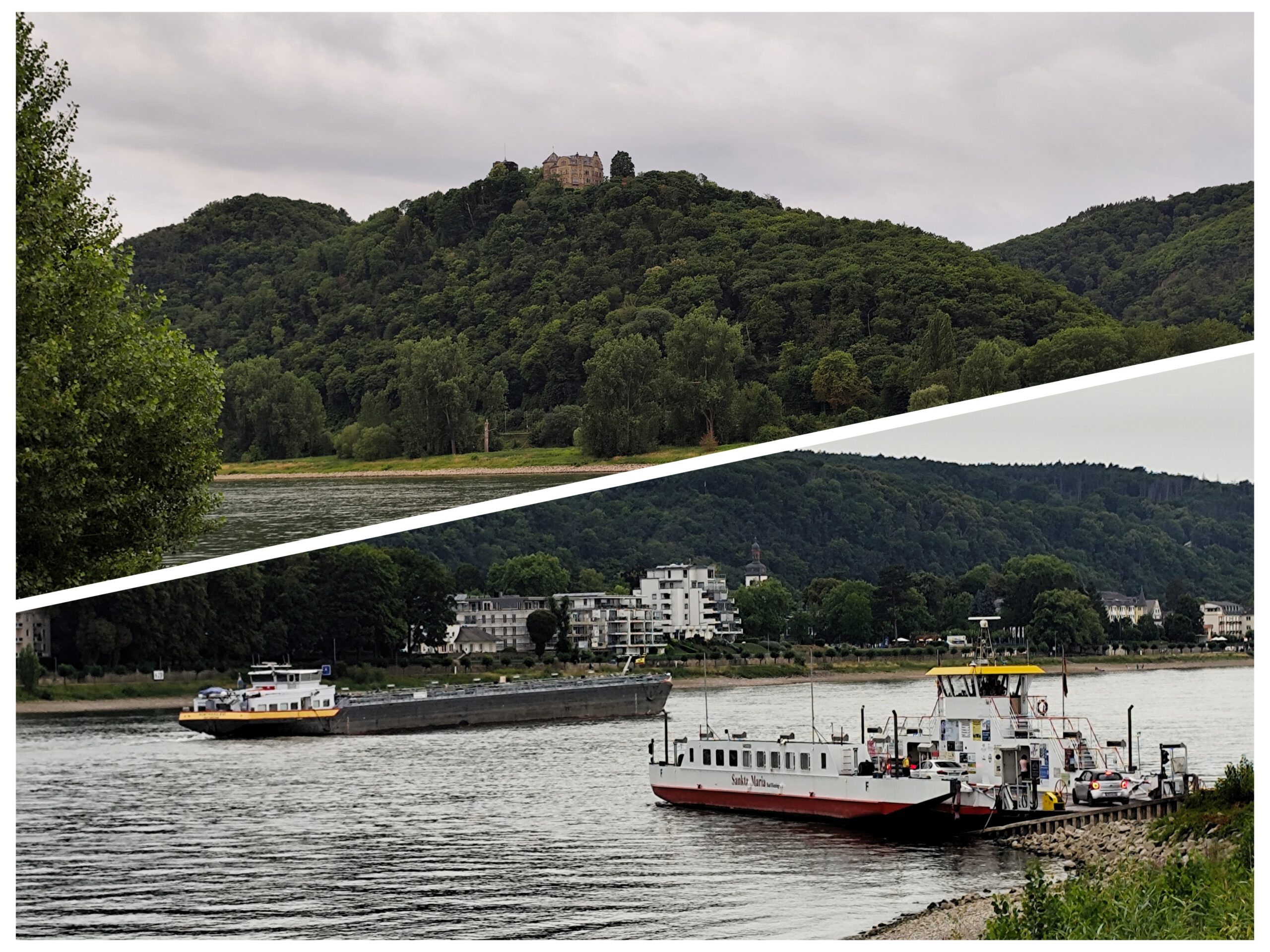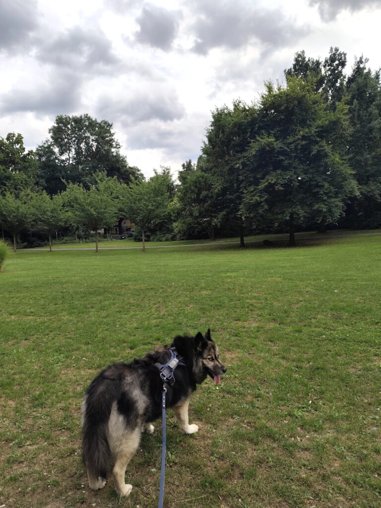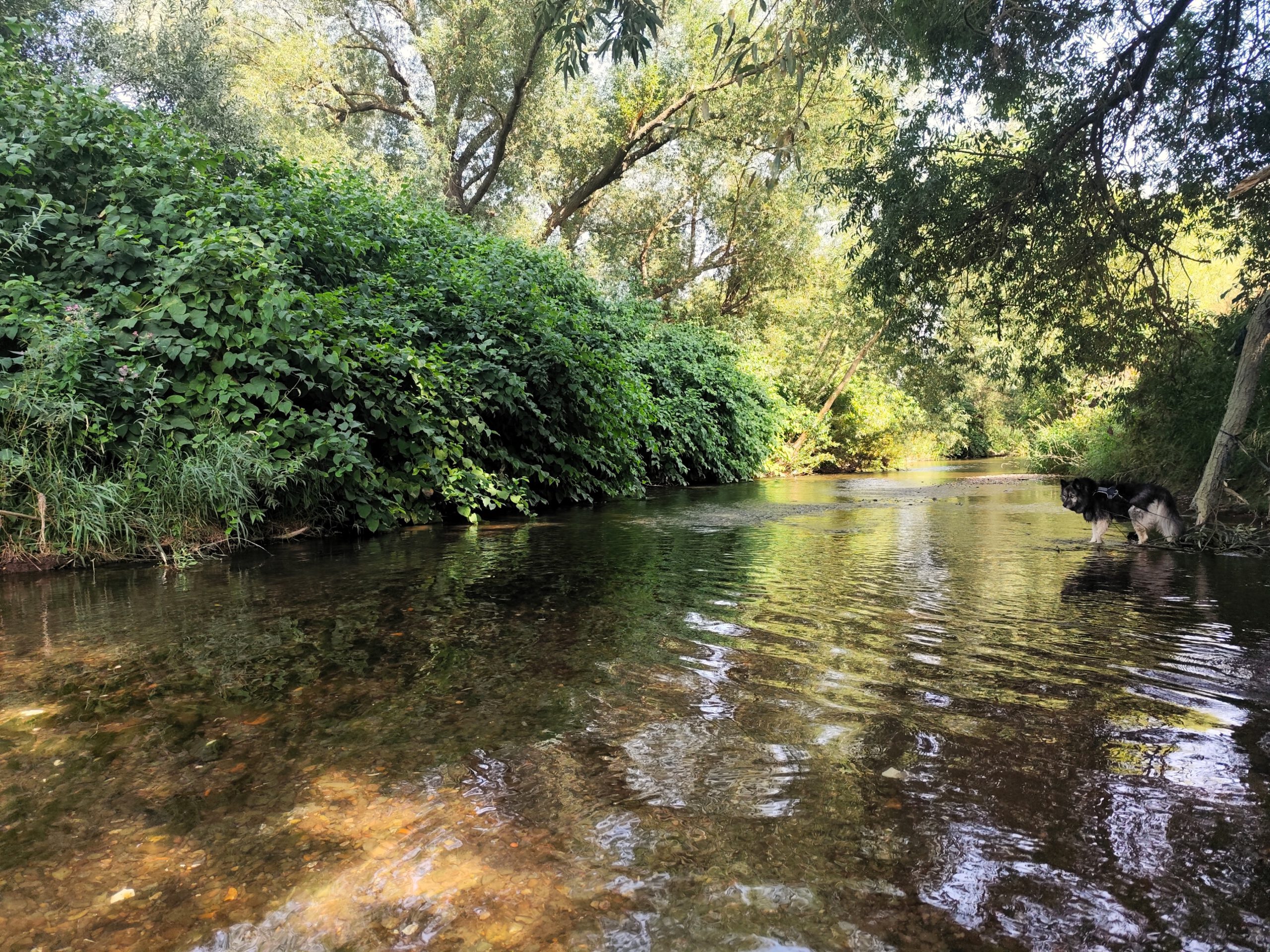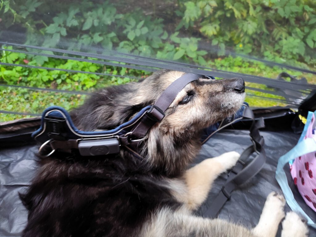 Oha, die Reise geht weiter – auf Wiedersehen Moseltal! Eine kurze Gassi Runde in der Eifel, die Currywurst Pommes Stärkung am Nürburgring für meine Leute und schwupps, trägt die Fähre uns über den Rhein von Bad Breisig nach Bad Hönningen. Kurze Zeit später ein kurzer Halt im Wald, der Himmel verdunkelt sich. Prompt bricht ein Unwetter los, ab ins Auto, das mag ich ja gar nicht, wenn es kracht und blitzt, dazu regnet es in Strömen. Selbst meine Leute scheinen auch etwas besorgt zu sein, vorsichtig fahren wir weiter bis Kurtscheid, bloß weg von der Landstraße im Wald. Wir harren aus bis die dunkle Front vorbeigezogen ist und reisen zum Camp Fuchsmühle im Westerwald. Damit hätte ich nicht gerechnet, dass wir wie letztes Jahr an diesem schönen Zeltplatz am Kleinen Saynbach