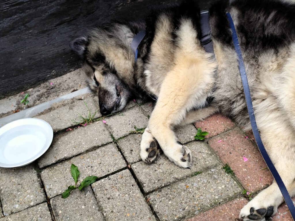 Pflegeprogramm Teil Zwei – das Bad hat seine Wirkung entfaltet, jede Menge Unterwolle wird ausgebürstet, da fragt man sich echt, war ich wirklich erst vor kurzem beim Friseur? Ist halt mein Talent besonders viel Fell zu produzieren. Jeder macht sich schick und als meine „Tanten“ aus Köln vorbeikommen, fahren wir alle los – zum Biergarten Da Botticelli. „Oma“ gibt heute einen aus und es wird in großer Runde gefeiert, 14 Leute zähle ich, davon sind mir allerdings nicht alle bekannt. Ich mache es mir bequem und meine „Tante“ versorgt mich mit Kräuterbutter. Als es bereits dunkelt, zieht die ganze Kompanie weiter, bis spät in der Nacht genießen wir die fröhliche Runde zuhause bei „Oma“, bis die Gäste nach und nach verschwunden sind. Herrchen darf den Nachtexpress spielen und bringt uns zurück ins Ostviertel. Was ein aufregender Tag!