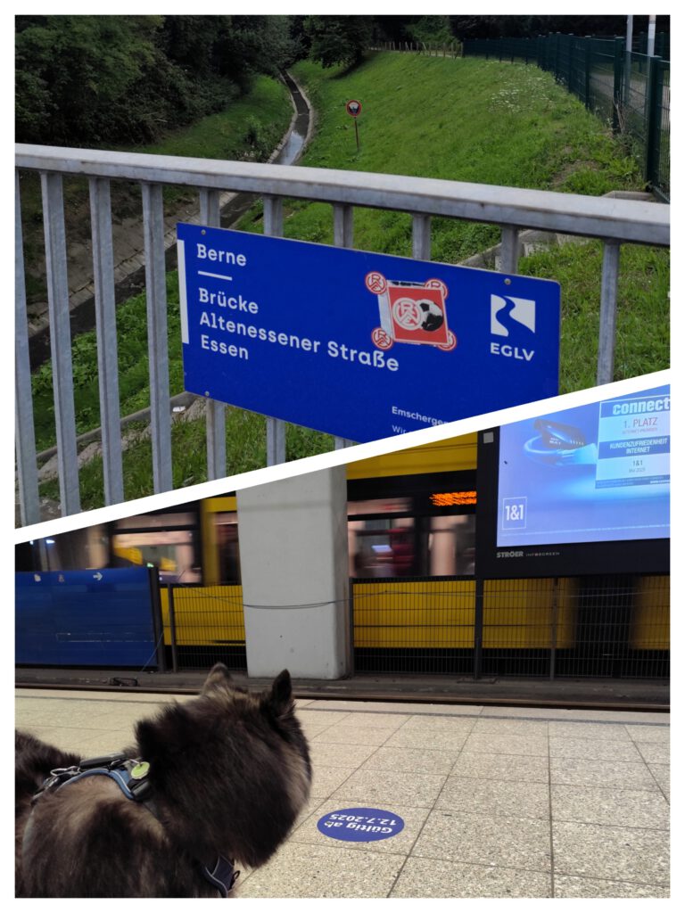 Nach dem Ausschlafen sehe ich meine „Tanten“ kurz wieder, bevor sie zurück nach Köln fahren. Nachmittags machen wir uns mit der Familie auf den Weg in Richtung Altenessen, Wolle muss ja sein Auto abholen. Erst ein kurzes Stück Weg mit der Straßenbahn, die sogar aus dem Tunnel herausfährt und manchmal sehr seltsam quietscht. Dann den restlichen Weg gemütlich spazieren gehen. Beim kurzweiligen Aufenthalt auf „Oma’s Balkon“ genießen wir das heitere warme Sommerwetter. Abends fresse ich mein Menü aus Leberwurst & Ei & Milch, da merke ich anhand der Vorbereitungen, wir ziehen bestimmt bald wieder in die Wildnis.