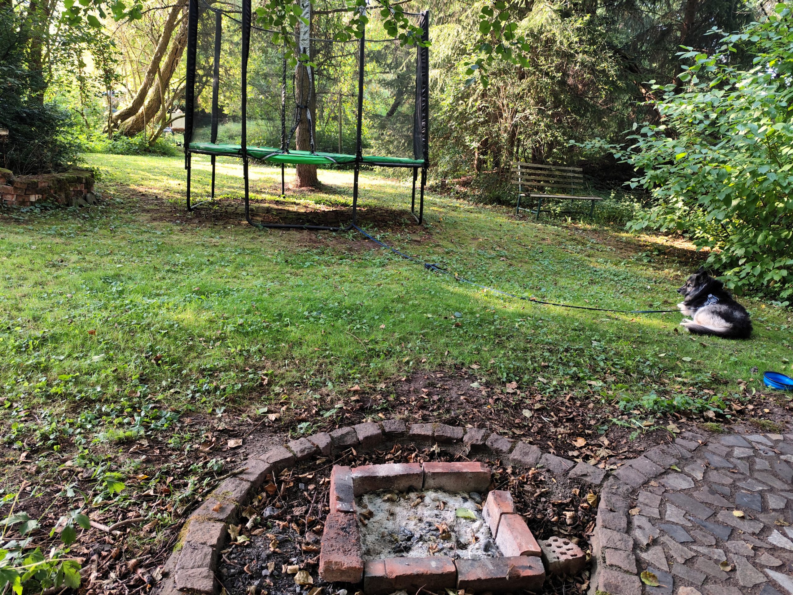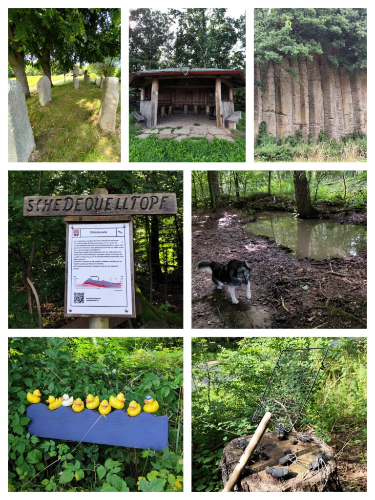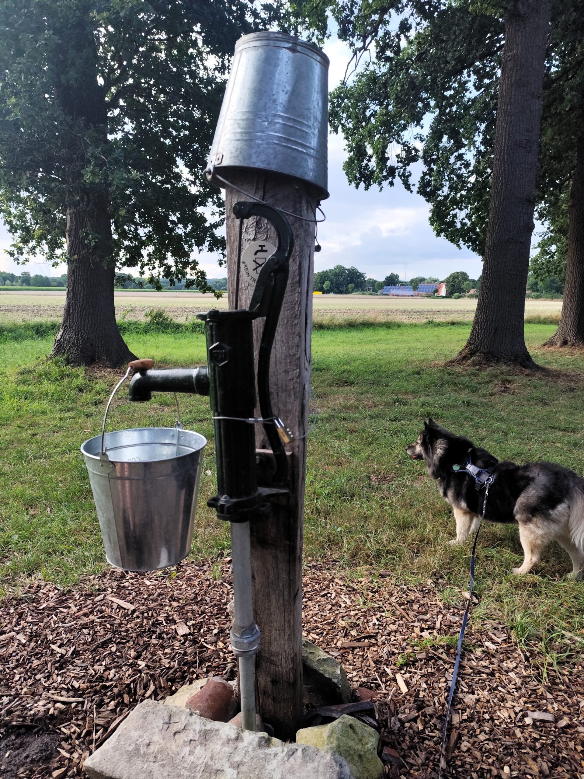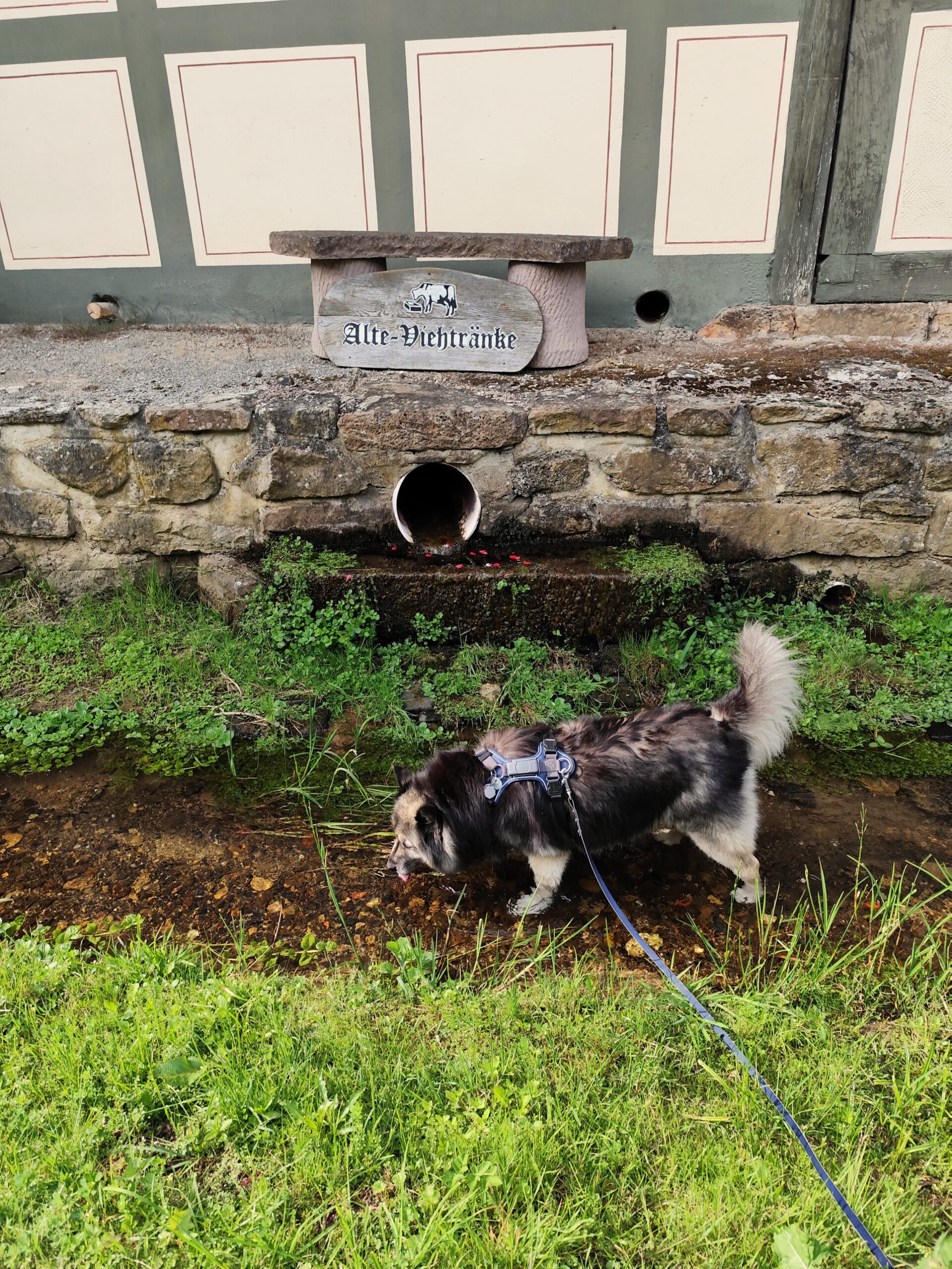 und wandern den Rundweg an der Schedequelle. Die „Alte Viehtränke“ löscht auch meinen Durst, hihi. Zurück am Bauernhof entfachen wir das Lagerfeuer, Ferdinand schaut uns zu und mag wohl die Abwechslung.