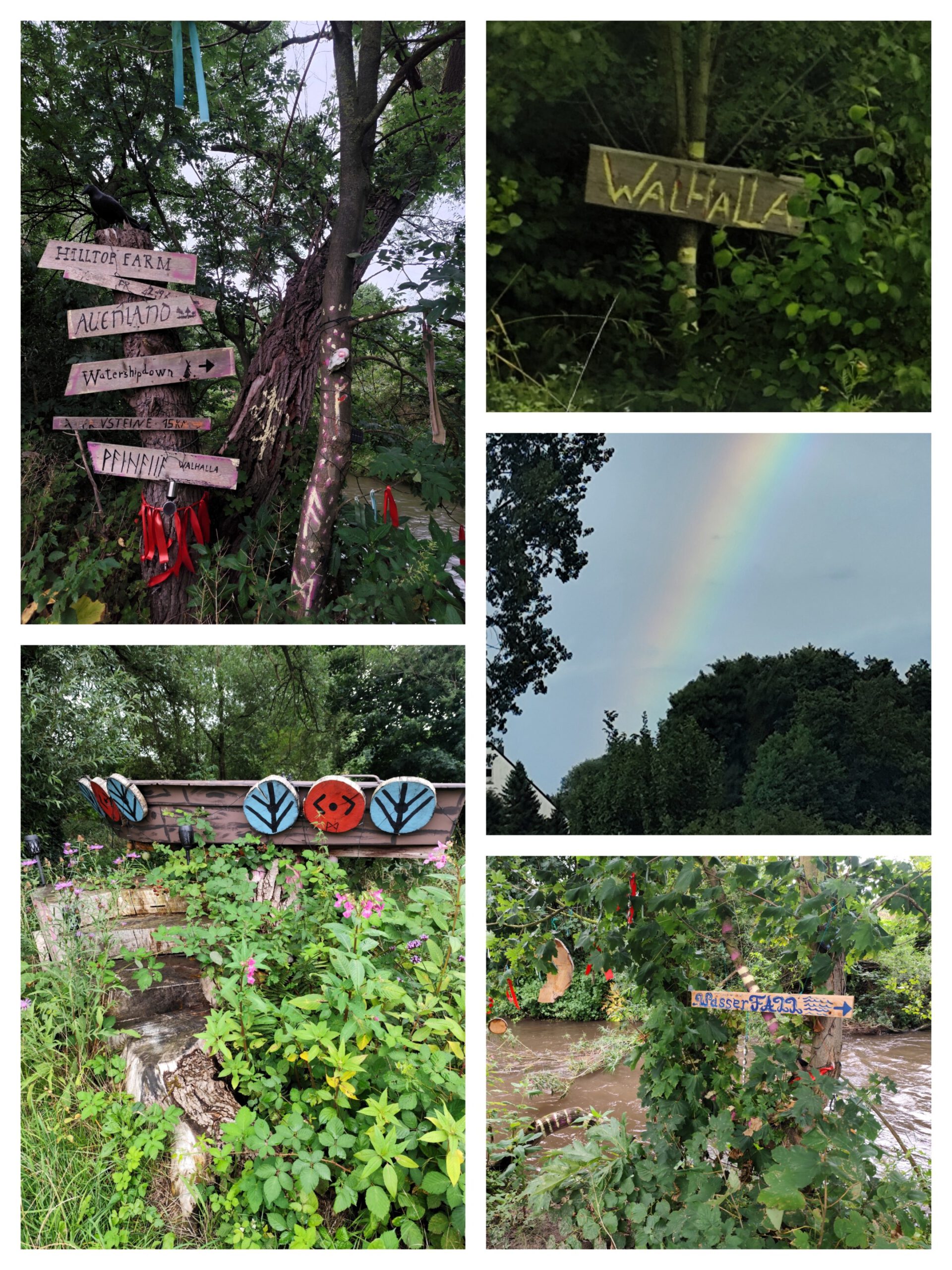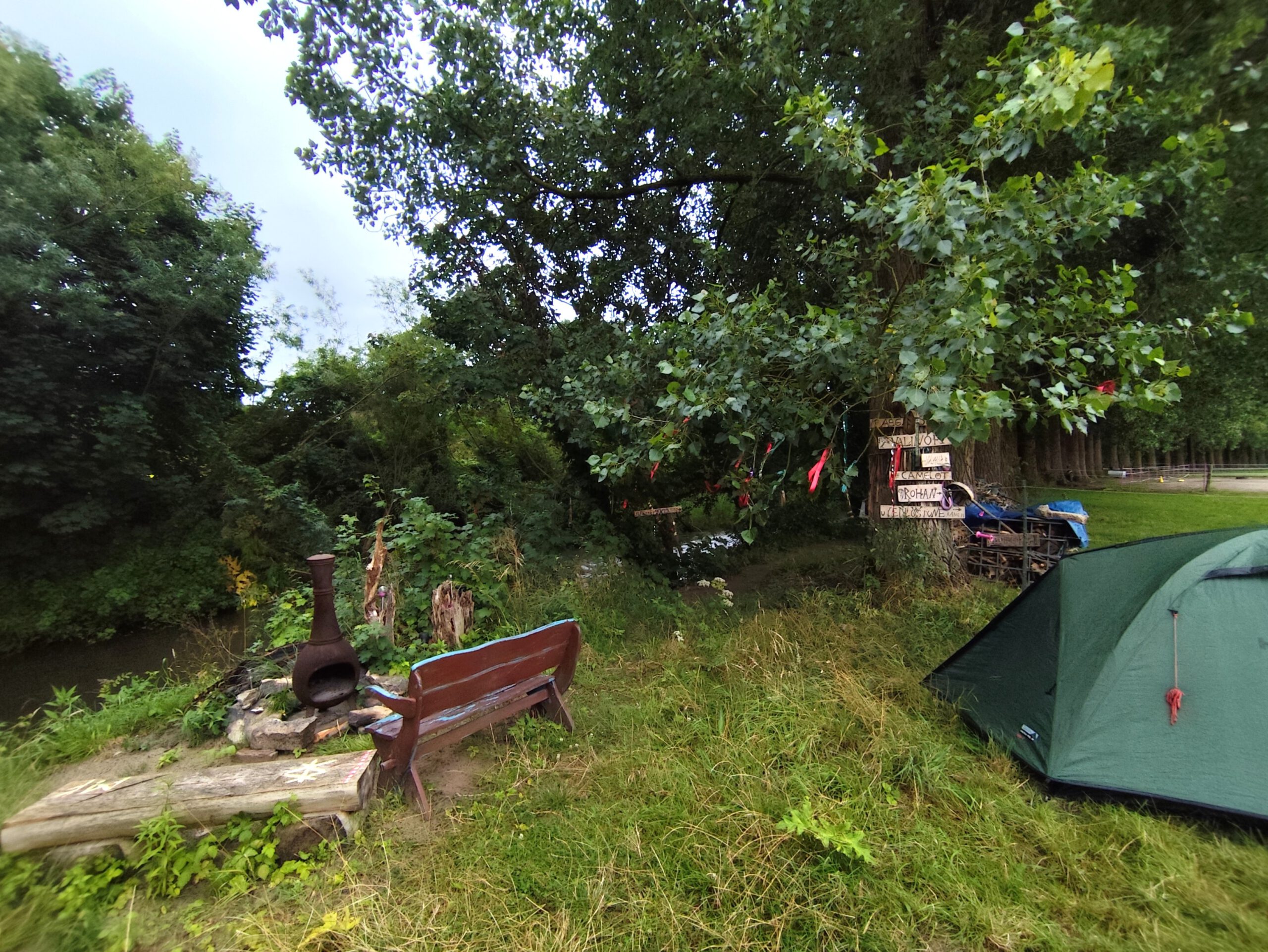 Schlaf, welcher Schlaf? Mitten in der Nacht, eigentlich ging es schon Richtung frühmorgens, gibt die Luftmatratze den Geist auf. Während ich noch darauf liege und versucht wird, Luft nach zu pumpen, macht es Peng! – und die Naht gibt endgültig den Geist auf. Dank dem Knall war ich flugs aus dem Zelt, genug Platz um wenigstens alles auf Isomatten und Decken umzurüsten. Mittags war dann Abreise, über Harsewinkel bis Nähe Bielefeld, um eine Pinkelpause einzulegen. Schließlich erreichen wir das Valhalla Camp bei Lage, Lippe – eine große Wiese neben der Pferdekoppel am Fluss Werra. Kaum ist alles eingerichtet, drehen wir noch eine Runde – Lemgo, Bad Salzuflen, Lage – haben wir endlich alles samt zwei neuer Luftmatratzen? Der Spot hier ist dazu weitaus besser angepriesen, als es eigentlich ist – den Unmut merke ich an der Stimmung. Den Regenbogen gesehen, Valhalla haben wir jedoch nicht wirklich gefunden. Wir sind eher auf dem Schlachtfeld liegen geblieben beim Kampf mit dem rostigen Grill und dem feuchten Feuerholz. Egal, nicht jeder Tag läuft halt gut, schön, dass die leckeren Spareribs Knochen für mich aufbewahrt wurden, und somit heißt es abends einfach nur Skål!